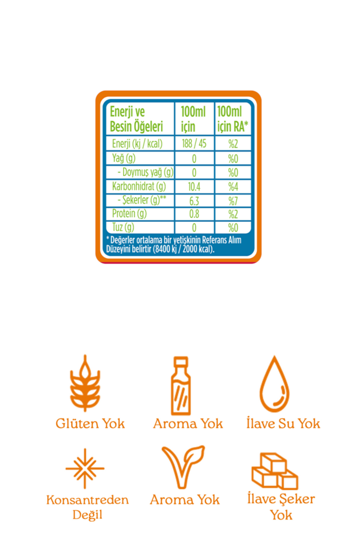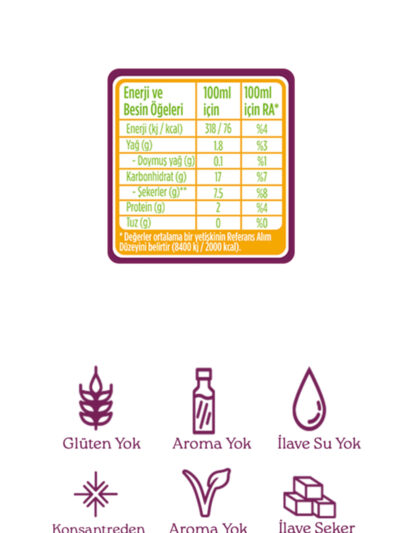 Enerji ve Besin Değerleri (100 ml için):